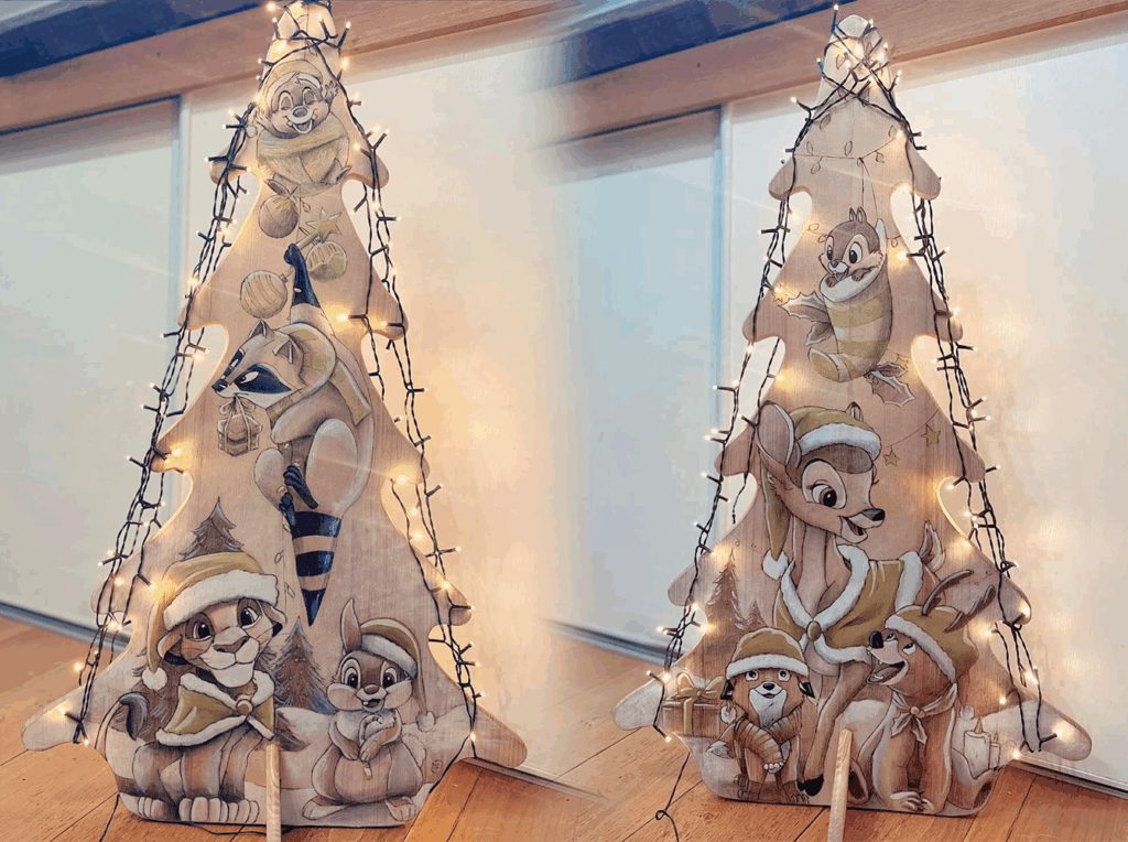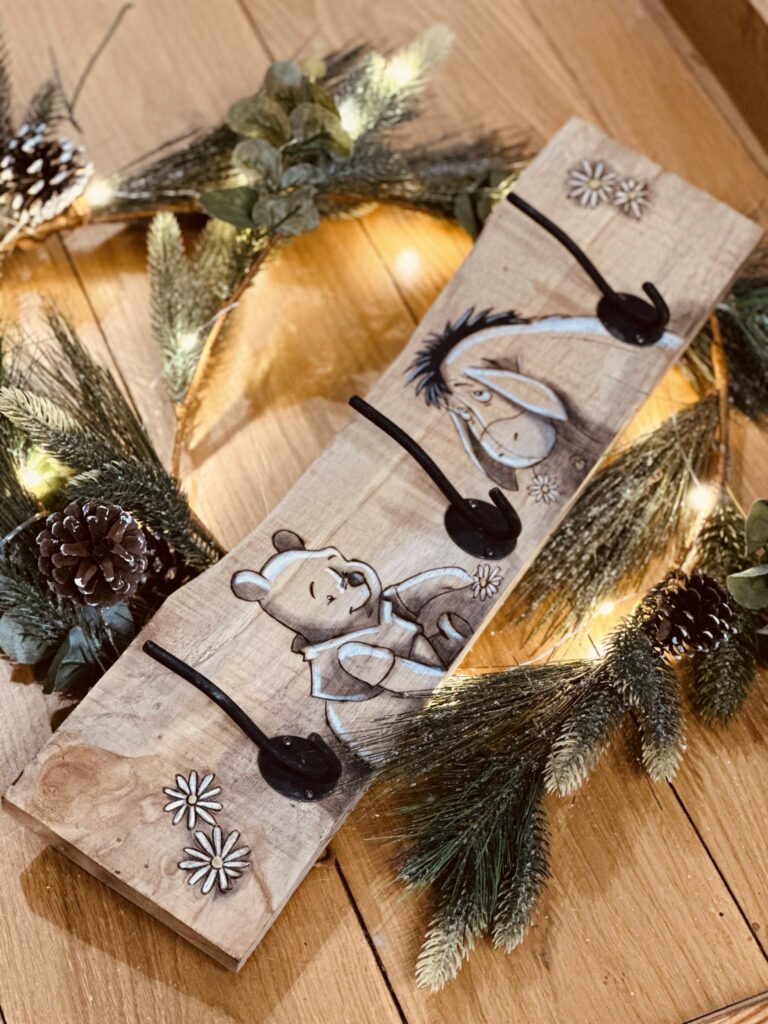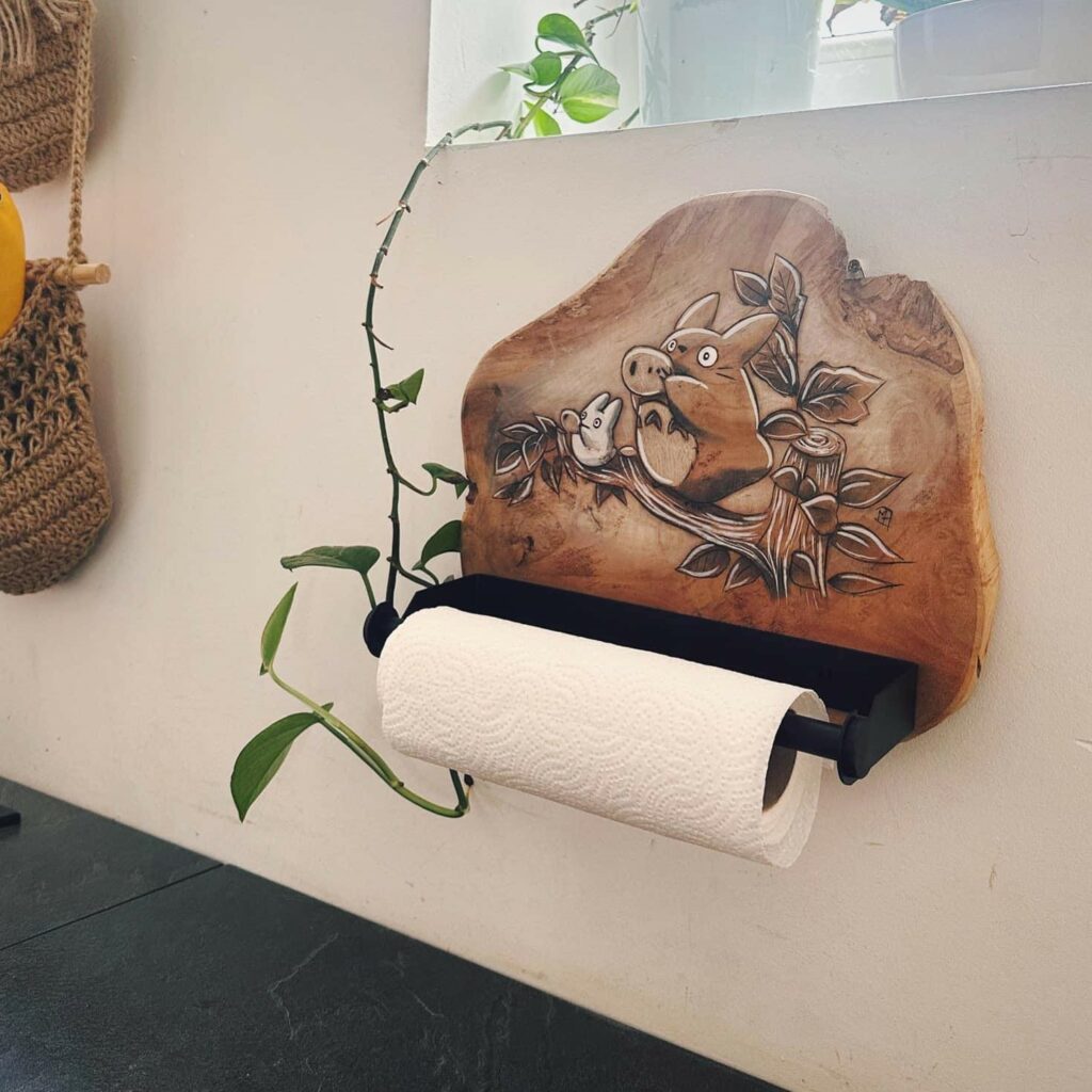 Pyrogravures réalisées sur différents supports en bois et vernis à plusieurs reprises permettant leur utilisation et nettoyage doux sans produits corrosifs ou lave-vaiselle.